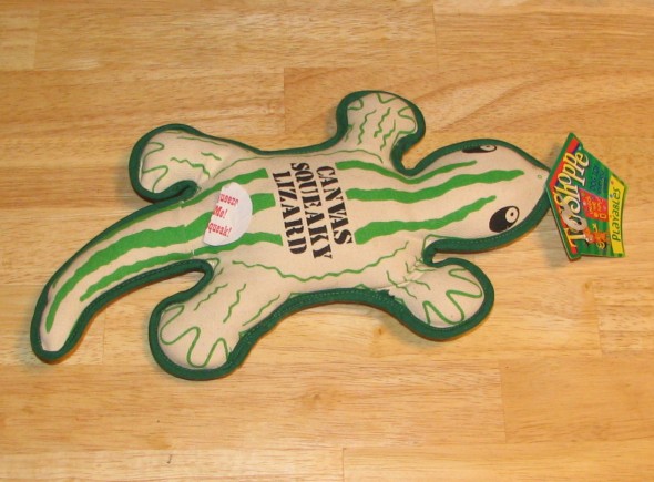 This squeaky lizard lasted about an hour before I tore his tail off and his stuffing out.