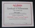 June 5th, 2005 I graduated from Petsmart's Puppy Training class! Basically, I know all of my commands and tricks, as long as there aren't too many distractions. Like other dogs. |
