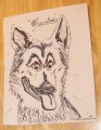 July 16th, 2005 This picture of me was drawn by Bruce Stevenson at the News14 Pet Project, a day of dog events to raise money. It was at a lake, and that was my first time near a big body of water. I ran right in and laid down. They also had a contest for best dog, but despite mentioning my website, I didn't win. |